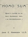 "Homo Sum" being a letter to an anti-suffragist from an anthropologist.djvu 1,748 × 2,788, 38 pages; 864 KB